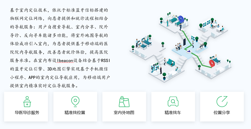 智慧医疗行业位置服务系统有有助于减少导医导诊的工作时间和提高患者导医导诊的工作效率,同时也减少医院的导诊压力;有助于提升医院医护人员的安全管理;有助于提高医院资产的有效利用率,有助于减少医院盘点工作量和寻找资产的时间,提升医院盘点工作的效率;有助于对医院设备运行可视化监控和效能管理提升;有助于特殊病患和婴幼儿的位置监控和生命体征检测;