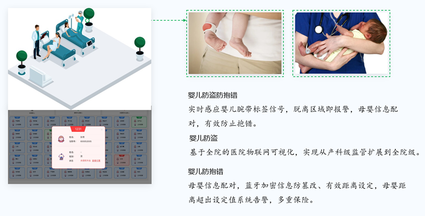 • 医患位置安全管理: 患者特殊病人婴幼儿童医护人员的位置实时可视化管控难
